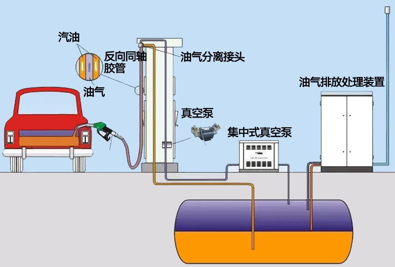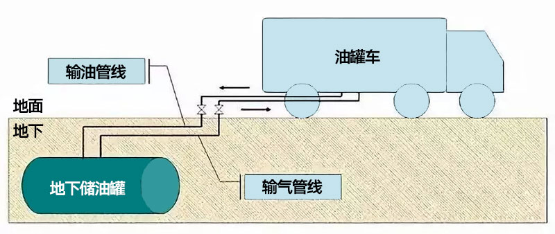 二次油氣回收階段是采用真空輔助式油氣回收設(shè)備,將在加油過(guò)程中揮發(fā)的油氣通過(guò)地下油氣回收管線收集到地下儲(chǔ)罐內(nèi)的油氣回收過(guò)程。